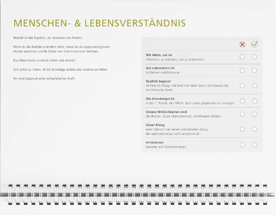Der Kurs vermittelt ein breites Spektrum an Analytik- und Therapiewerkzeugen, darunter Ebenen des Seins, Biofeedback, grafische Analyse und innere Arbeitsfähigkeit.